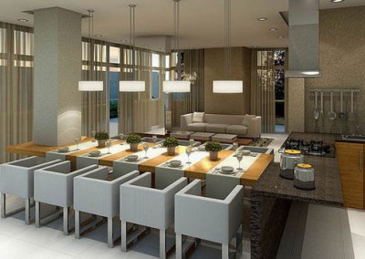 - Varanda Gourmet integrada à (Cozinha / Sala de Jantar, Estar e TV)