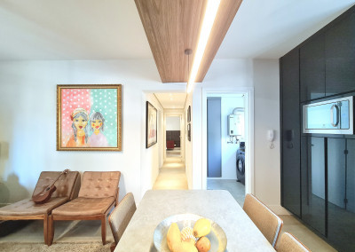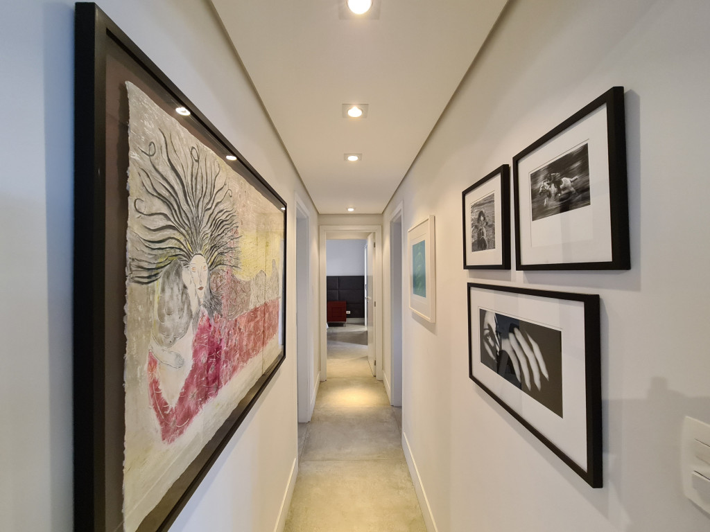 O apartamento conta com um lavabo para receber amigos com estilo e garantir a privacidade.