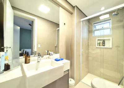 Este imóvel oferece duas suítes bem projetadas, cada uma com espaçosos banheiros e janelas que permitem a entrada de luz natural e uma ventilação agradável.