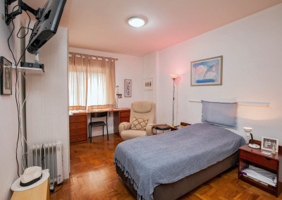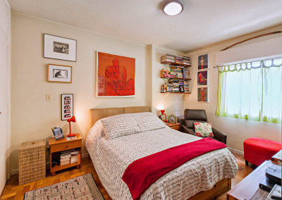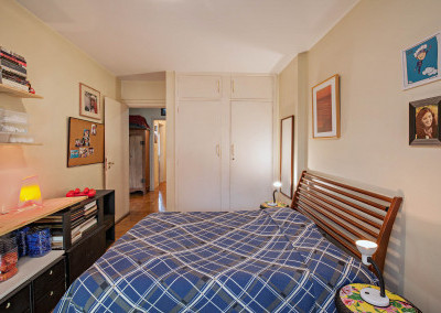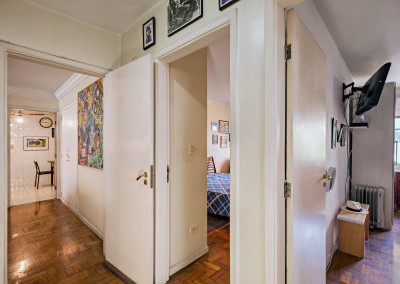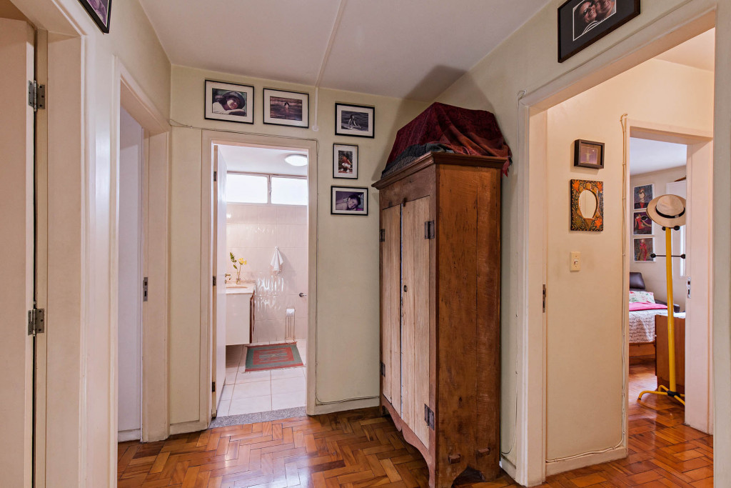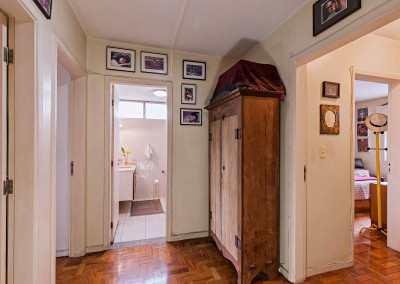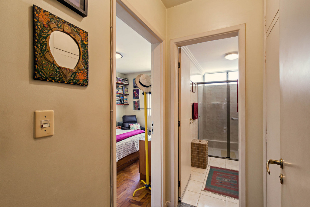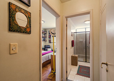 Em direção à área privativa temos um hall de distribuição que articula os dormitórios e o banheiro social.