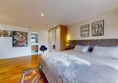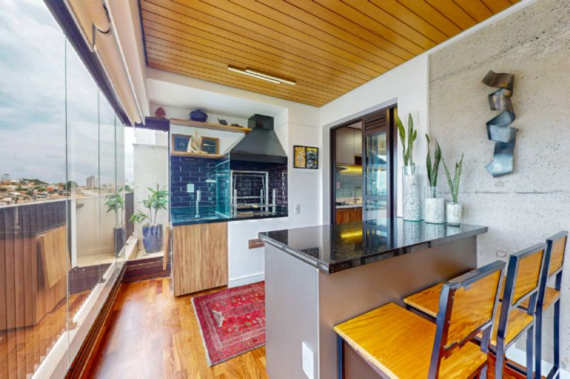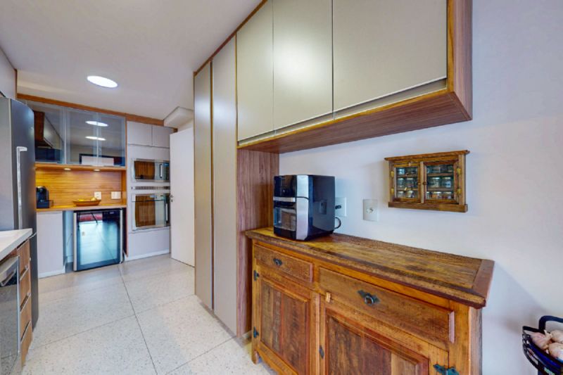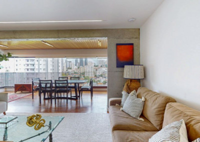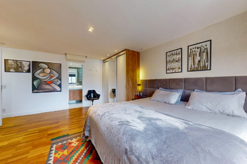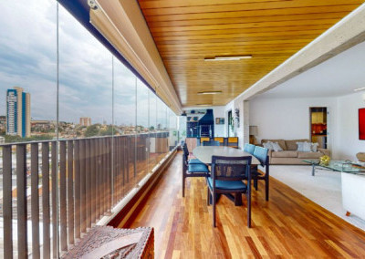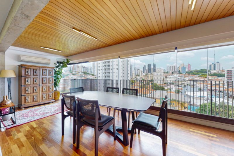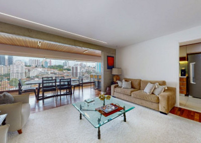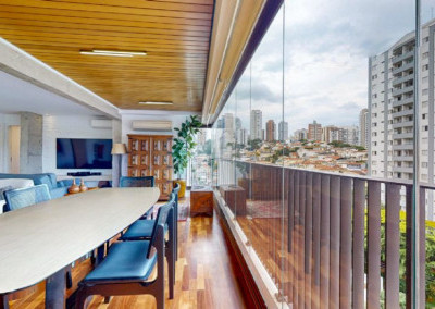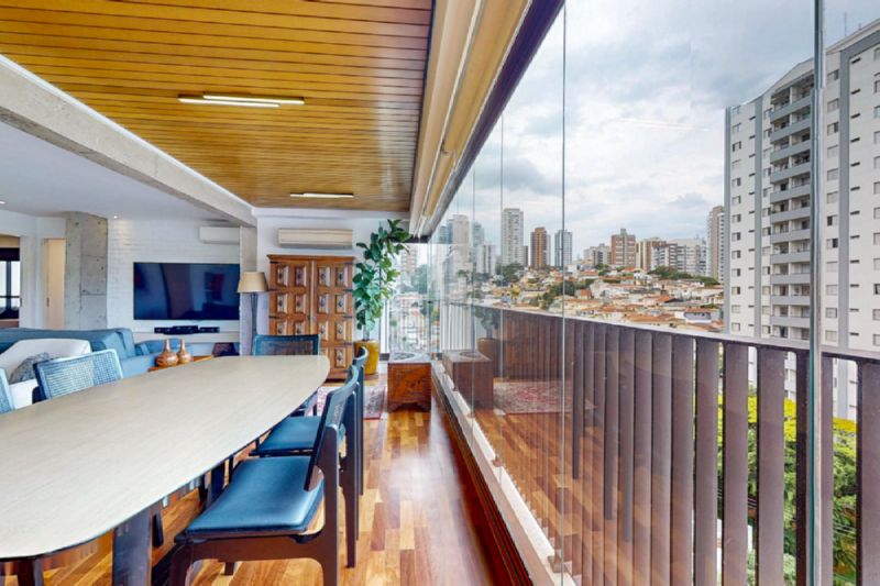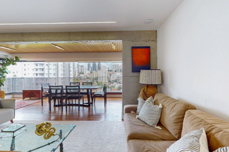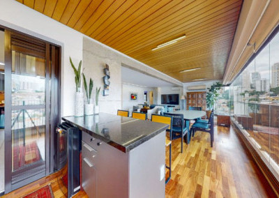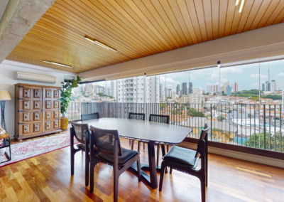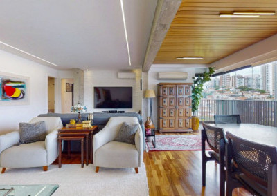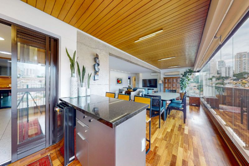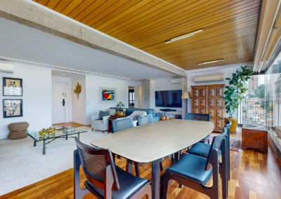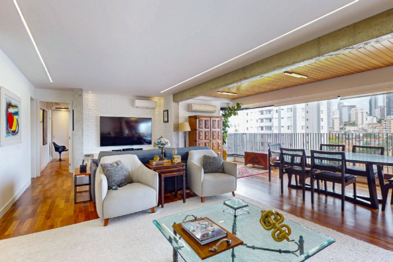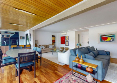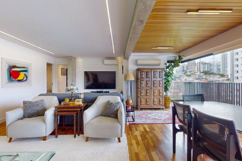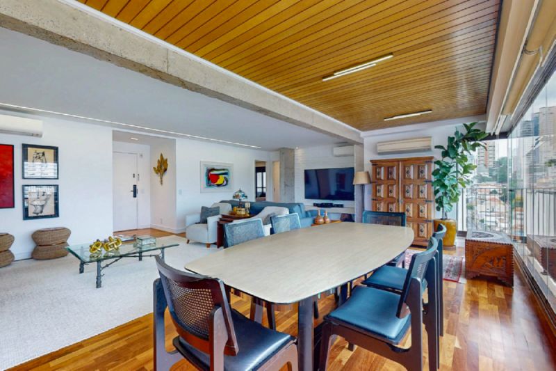 Apartamento com 144m², piso em madeira e ambientes amplos e bem distribuídos.