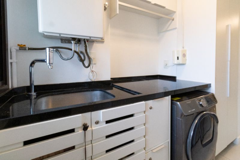 Conta ainda com lavabo, cozinha funcional, área de serviço com banheiro de apoio, duas vagas de garagem e depósito.