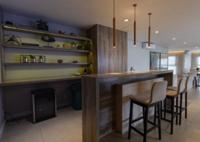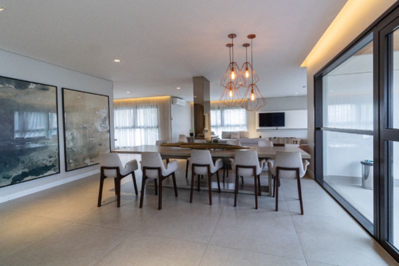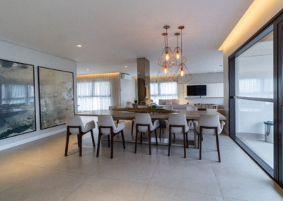 Possui duas suítes com arcondicionado, sendo que a suíte master possui dois banheiros, além de um living espaçoso para três ambientes, também climatizado, com varanda integrada e churrasqueira, ideal para receber amigos e familiares.