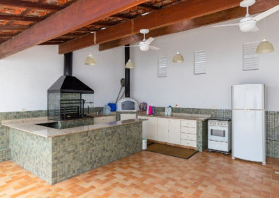 A suíte master possui closet e varanda privativa. A cozinha é espaçosa, com área de serviço independente, dependência de empregada e banheiro de serviço.