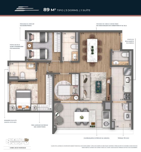 - Área útil: 89.00 m2