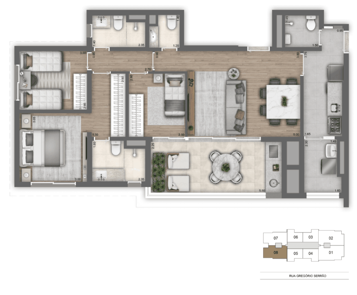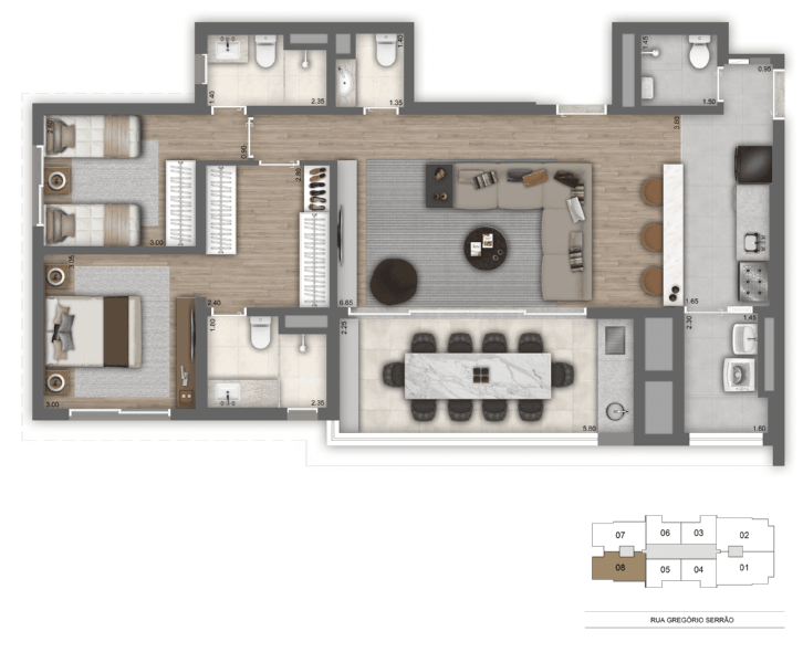 - Banheiros: 3