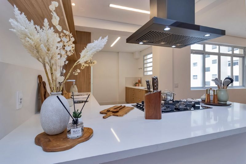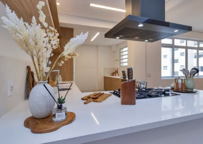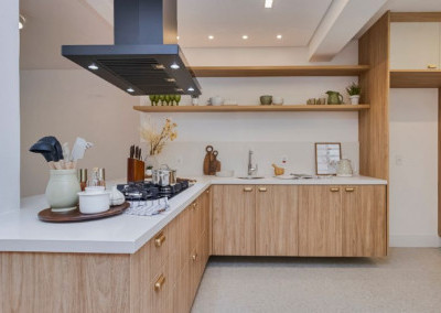 **Apto será entregue com marcenaria (cozinha, área de serviço, gabinetes dos banheiros), cooktop, coifa, forno elétrico e aquecedor a gás.