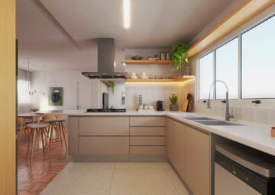 **Apto será entregue com marcenaria (cozinha, área de serviço e gabinetes dos banheiros), cooktop, coifa, forno elétrico, aquecedor à gás.